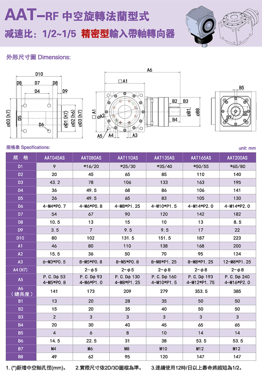 多樣化:輸出軸種類多樣化,有單出力軸型、雙出力軸型、中空軸型、中空法蘭型、中空軸錐形緊迫性、螺桿直線型、螺牙直線型。
