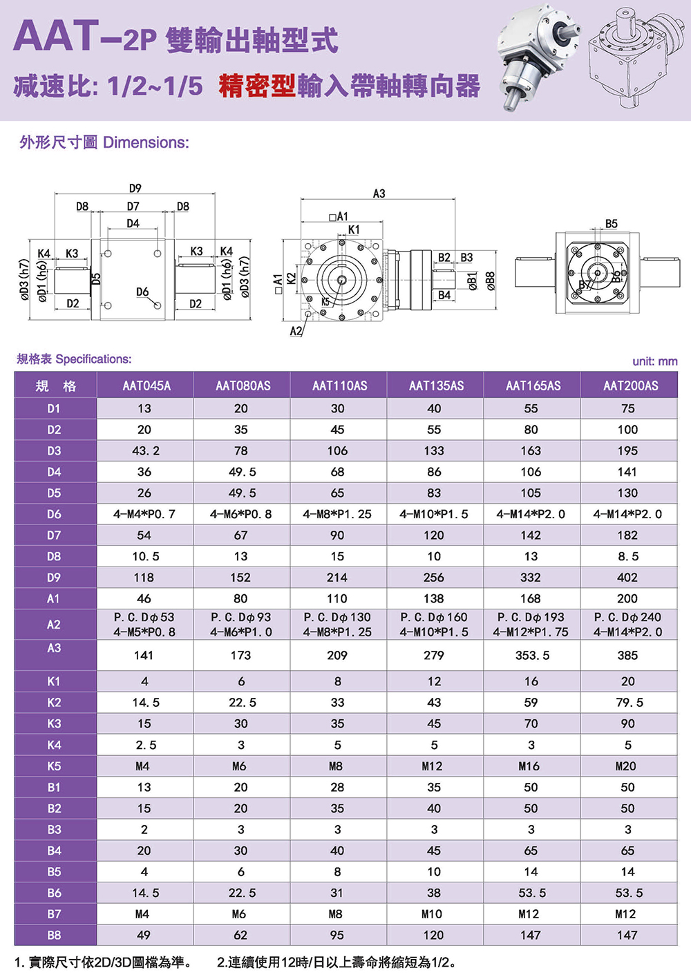 AAT-2P雙輸出軸型式 精密型輸入帶軸轉(zhuǎn)向器