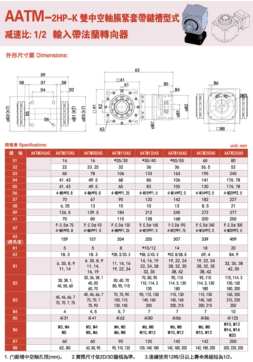 AATM-2HP-K中空軸脹緊套帶鍵槽型式 輸入帶法蘭轉(zhuǎn)向器