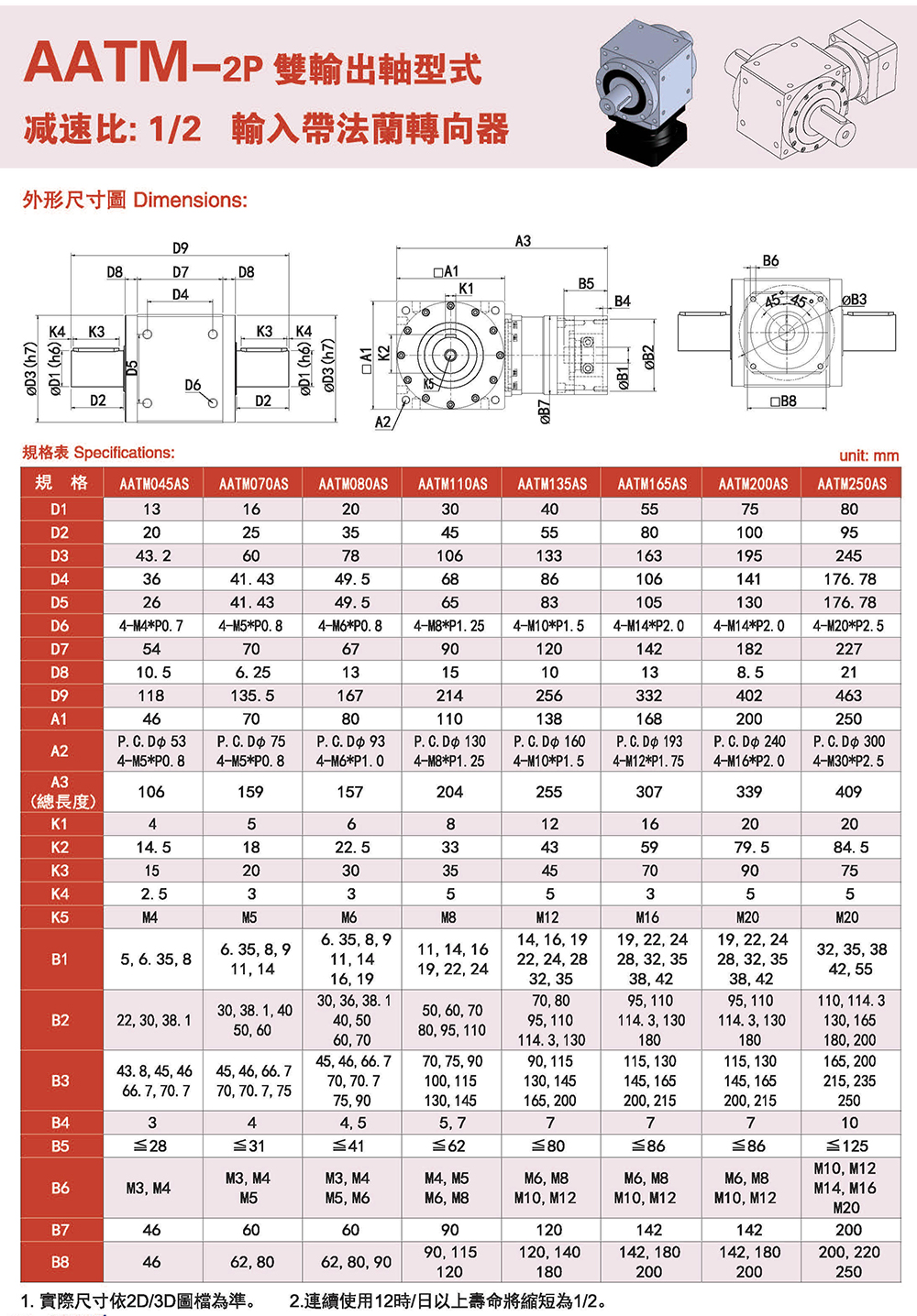 多樣化:輸出軸種類多樣化,有單出力軸型、雙出力軸型、中空軸型、中空法蘭型、中空軸錐形緊迫性、螺桿直線型、螺牙直線型。