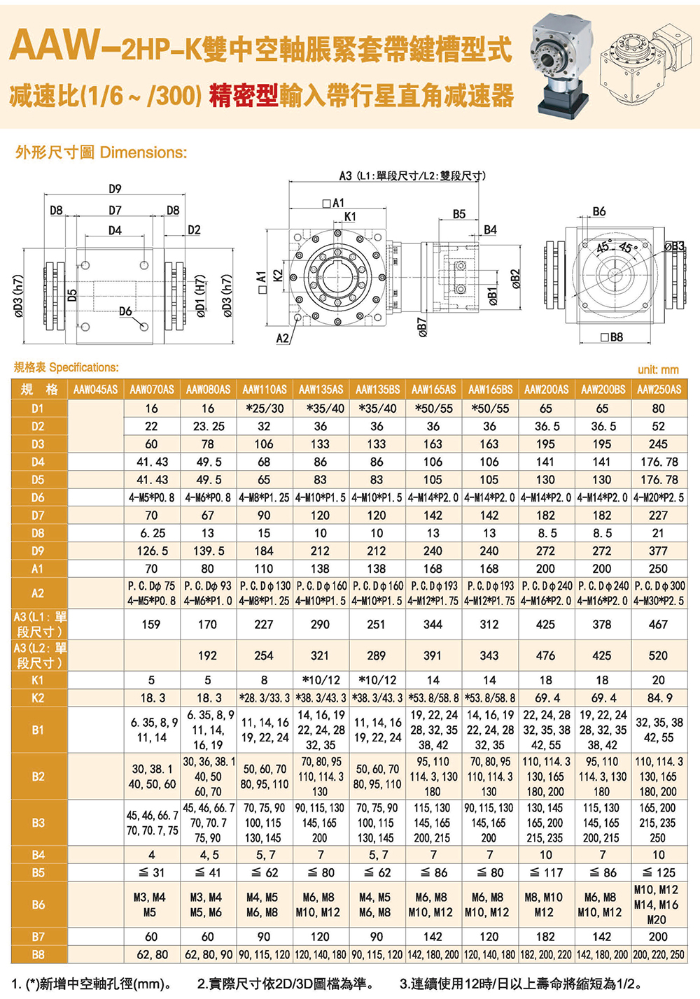 多樣化:輸出軸種類多樣化,有單出力軸型、雙出力軸型、中空軸型、中空法蘭型、中空軸錐形緊迫性、螺桿直線型、螺牙直線型。