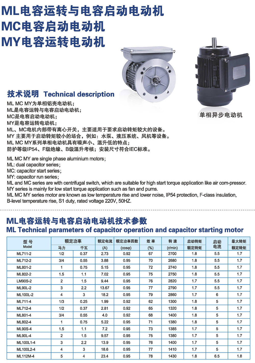 ML/MC/MY電容啟動與運(yùn)轉(zhuǎn)電動機(jī)