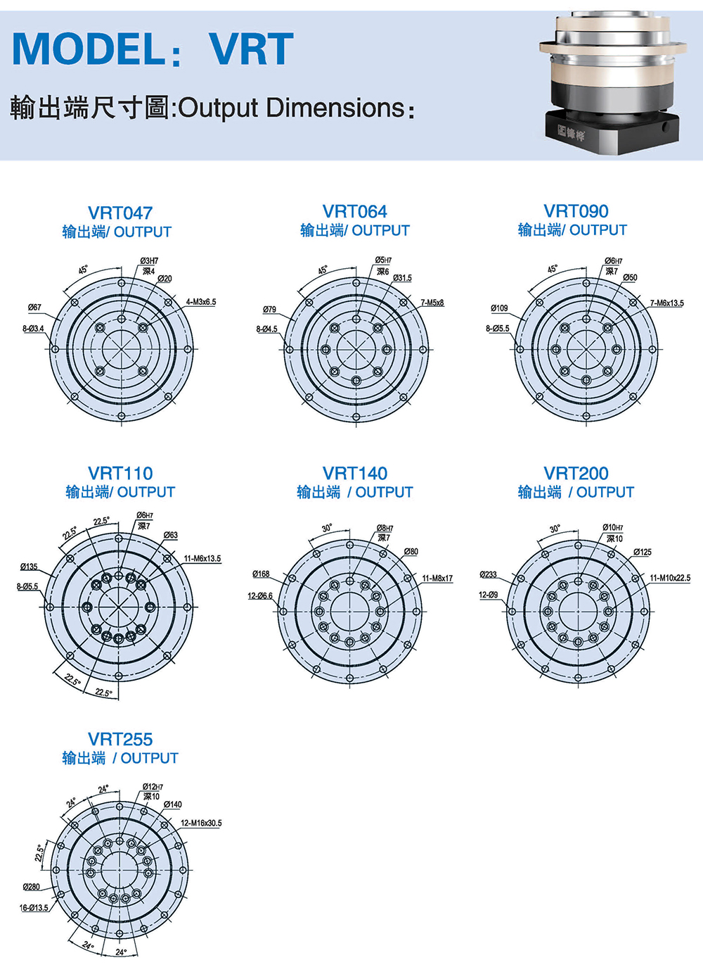 輸出軸形式新增了法蘭盤面輸出,底座安裝,可用于大負(fù)載旋轉(zhuǎn)平臺(tái)應(yīng)用使用。