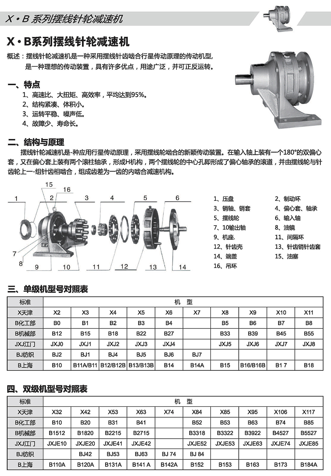 擺線針輪減速機(jī)是種應(yīng)用行星傳動(dòng)原理,采用擺線輪嚙合的新穎傳動(dòng)裝置。在輸入軸上裝有一個(gè)180°的雙偏心套,又在偏心套上裝有兩個(gè)滾柱軸承,形成H機(jī)構(gòu),兩個(gè)擺線輪的中心孔即形成了偏心軸承的滾道,并由擺線輪與針齒輪上- --組針齒相嚙合,組成齒差為- -齒的內(nèi)嚙合減速機(jī)構(gòu)。