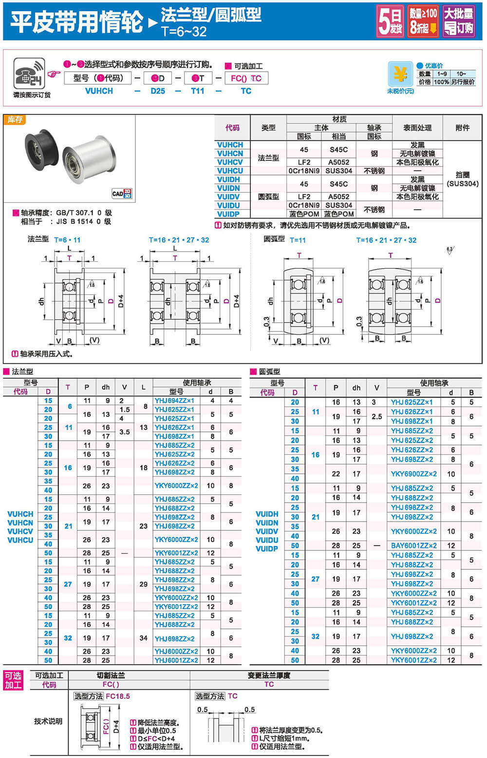 滑輪惰輪在機(jī)械設(shè)備中與平皮帶圓皮帶配合使用,起到動(dòng)力傳遞、輸出、過(guò)渡、皮帶張緊用等,用于皮帶張緊時(shí)也可稱作張緊輪
