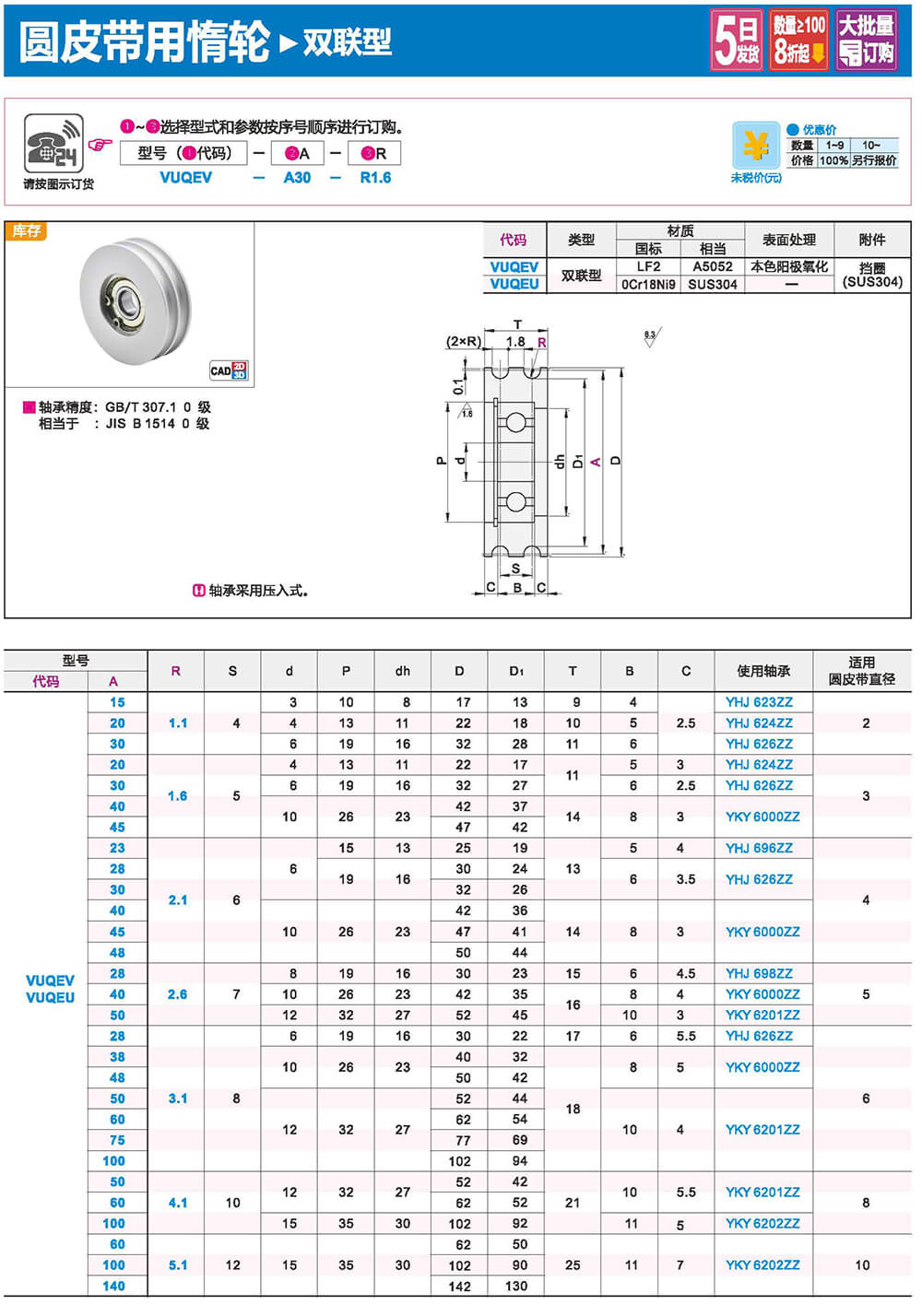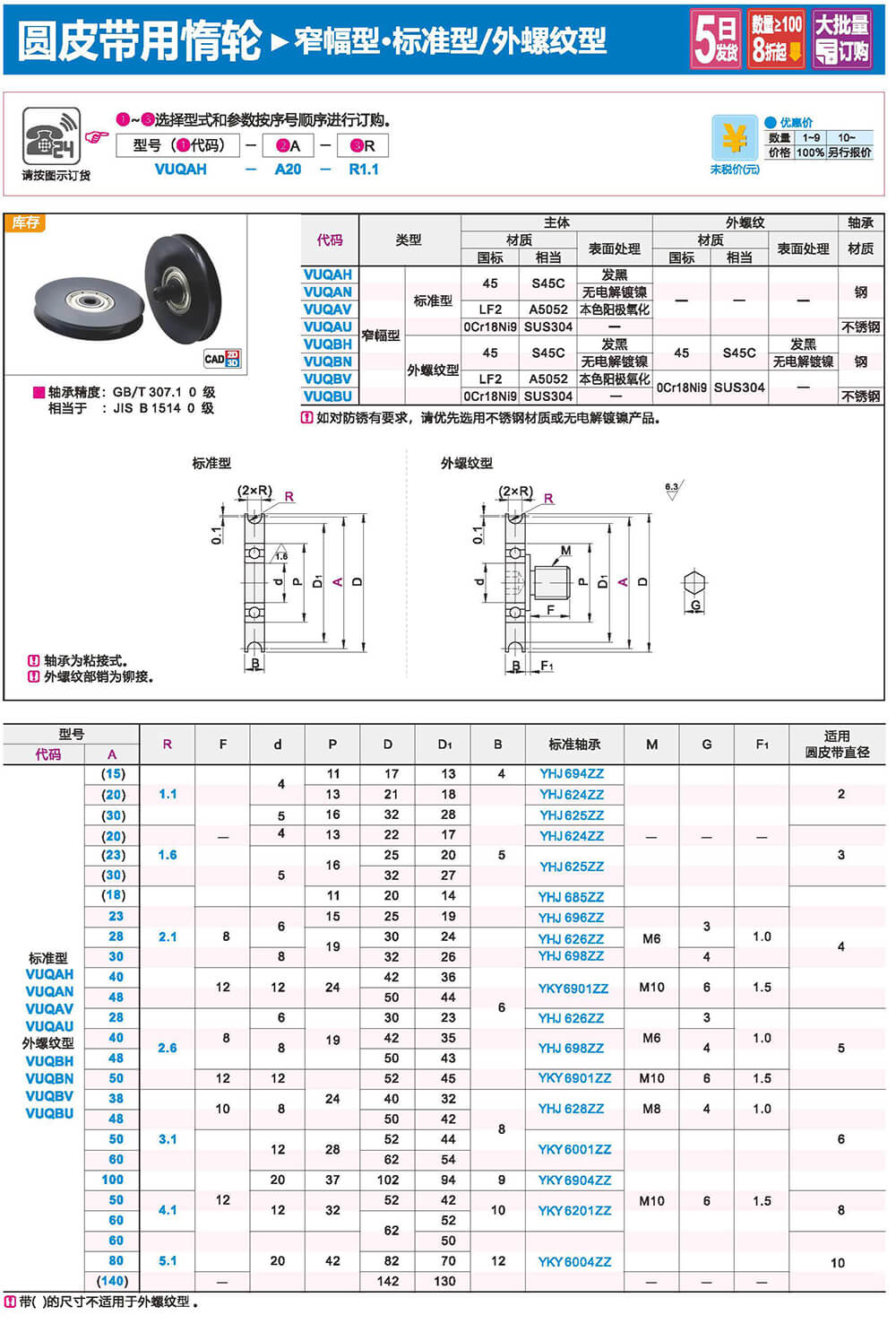 滑輪惰輪在機(jī)械設(shè)備中與平皮帶圓皮帶配合使用,起到動(dòng)力傳遞、輸出、過(guò)渡、皮帶張緊用等,用于皮帶張緊時(shí)也可稱作張緊輪