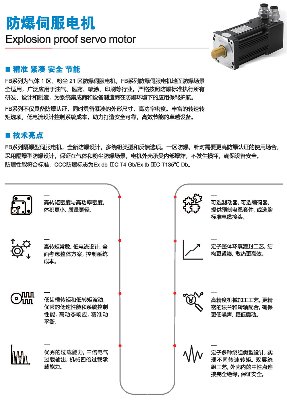 FB系列為氣體1區(qū)、粉塵21 區(qū)防爆同服電機(jī),F(xiàn)B系列防同服電機(jī)地面防爆場(chǎng)景全適用,廣泛應(yīng)用于油氣、醫(yī)藥、噴涂、印刷等行業(yè)。嚴(yán)格按照防爆標(biāo)準(zhǔn)執(zhí)行所有研發(fā)、設(shè)計(jì)和制造,為系統(tǒng)集成商和設(shè)備制造商在防爆環(huán)境下的應(yīng)用保駕護(hù)航。FB系列不僅具備防爆認(rèn)證,同時(shí)具備緊湊的外形尺寸,高功率密度。豐富的轉(zhuǎn)速轉(zhuǎn)矩選項(xiàng),低電流設(shè)計(jì)控制系統(tǒng)成本,助力打造安全可靠,高效節(jié)能的卓越設(shè)備。