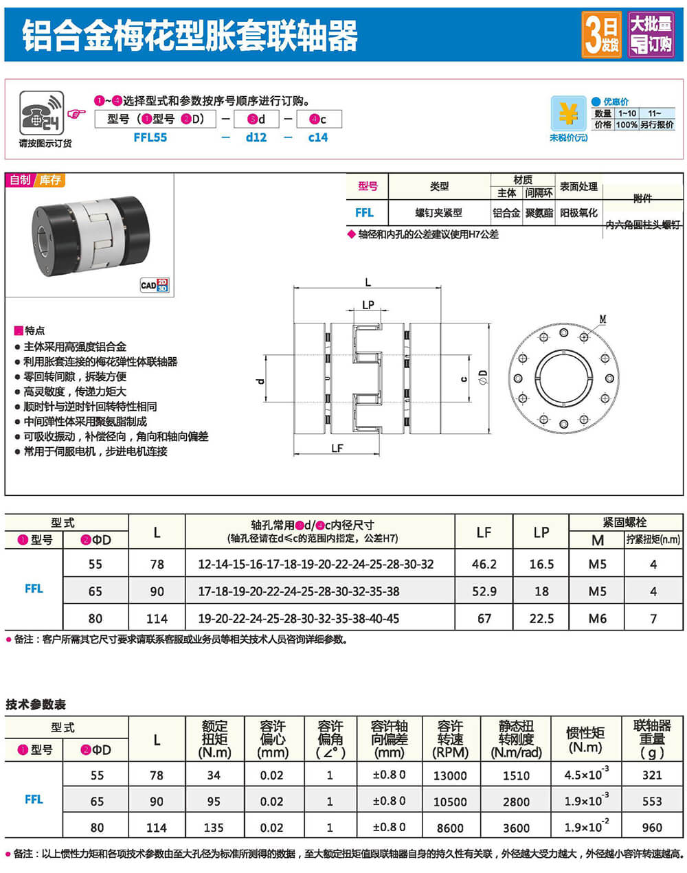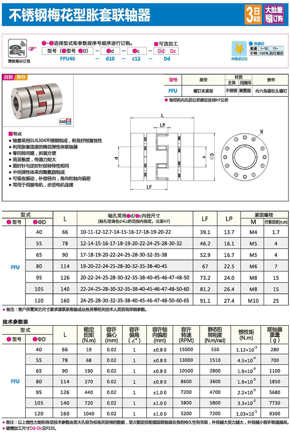 聯(lián)軸器是連接2個不同的旋轉(zhuǎn)體(電機(jī)軸,滾珠絲杠等),并以傳遞扭矩為目的的零件。通過吸收旋轉(zhuǎn)體間發(fā)生的軸心偏差(偏心.偏角.軸向振幅)減輕組裝調(diào)整的難度。并在發(fā)生意外過負(fù)載時,聯(lián)軸器首先損壞、解除旋轉(zhuǎn)體之間的連接,以保護(hù)昂貴的動力部及裝置整體。