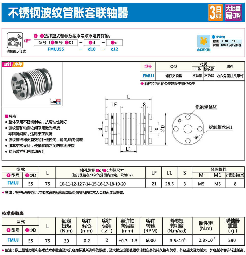 聯(lián)軸器是連接2個(gè)不同的旋轉(zhuǎn)體(電機(jī)軸,滾珠絲杠等),并以傳遞扭矩為目的的零件。通過吸收旋轉(zhuǎn)體間發(fā)生的軸心偏差(偏心.偏角.軸向振幅)減輕組裝調(diào)整的難度。并在發(fā)生意外過負(fù)載時(shí),聯(lián)軸器首先損壞、解除旋轉(zhuǎn)體之間的連接,以保護(hù)昂貴的動力部及裝置整體。