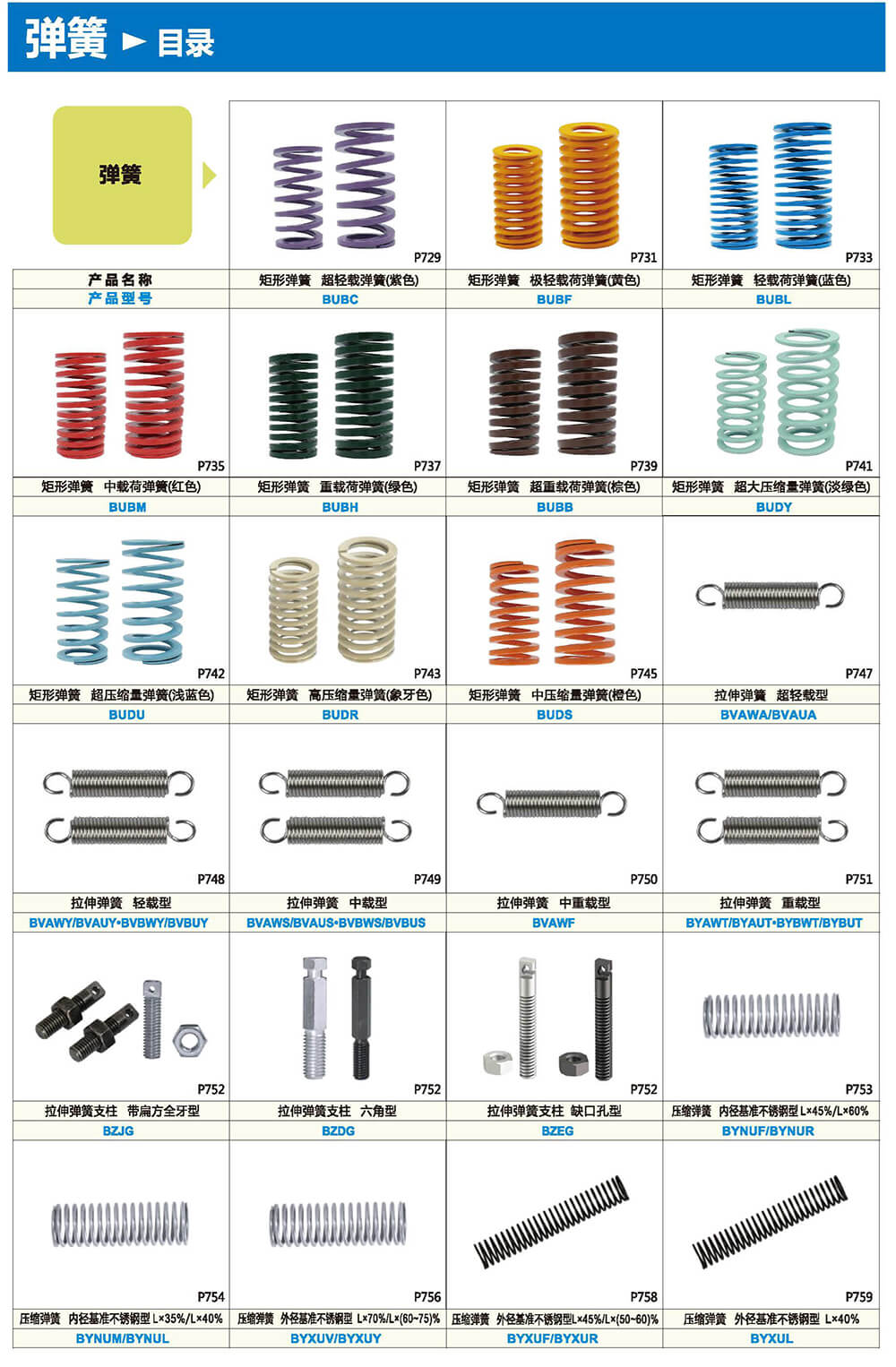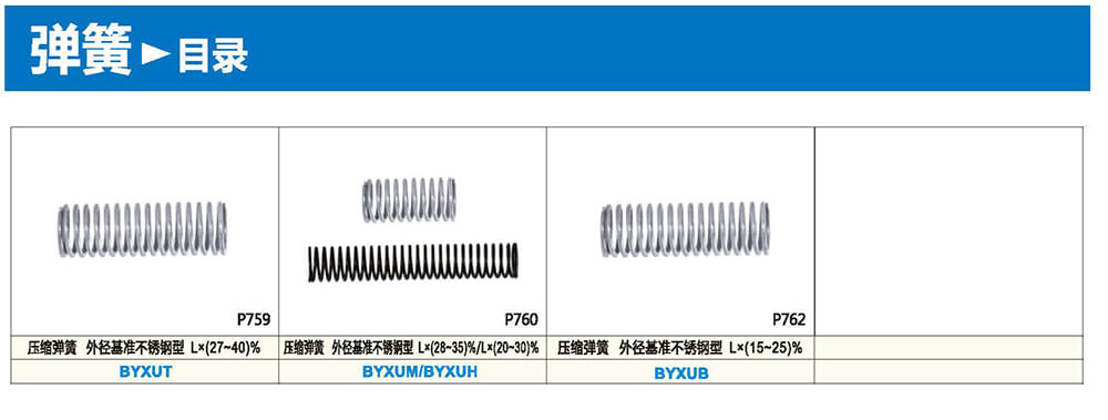 1.圓形截面壓縮彈簧:是承受軸向壓力的螺旋彈簧,它所用的材料截面為圓形。一般為等節(jié)距的,壓縮彈簧的圈與圈之間有一定間隙,當(dāng)受到外載荷時(shí)彈簧會(huì)收縮變形。其剛度穩(wěn)定,結(jié)構(gòu)簡單,制造方便,應(yīng)用較廣。