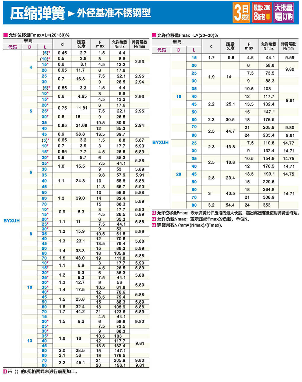 2.矩形截面壓縮彈簧:性質(zhì)和圓形截面圓柱螺旋彈簧相似,區(qū)別在于它所用的材料截面為矩形。在同樣空間條件下,矩形截面螺旋壓縮彈簧剛度更大,吸收的能量更多。