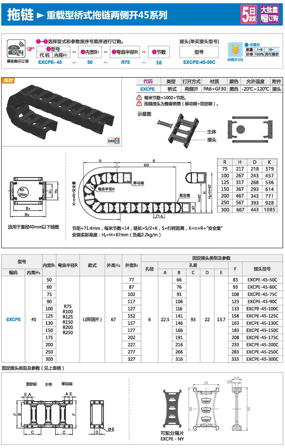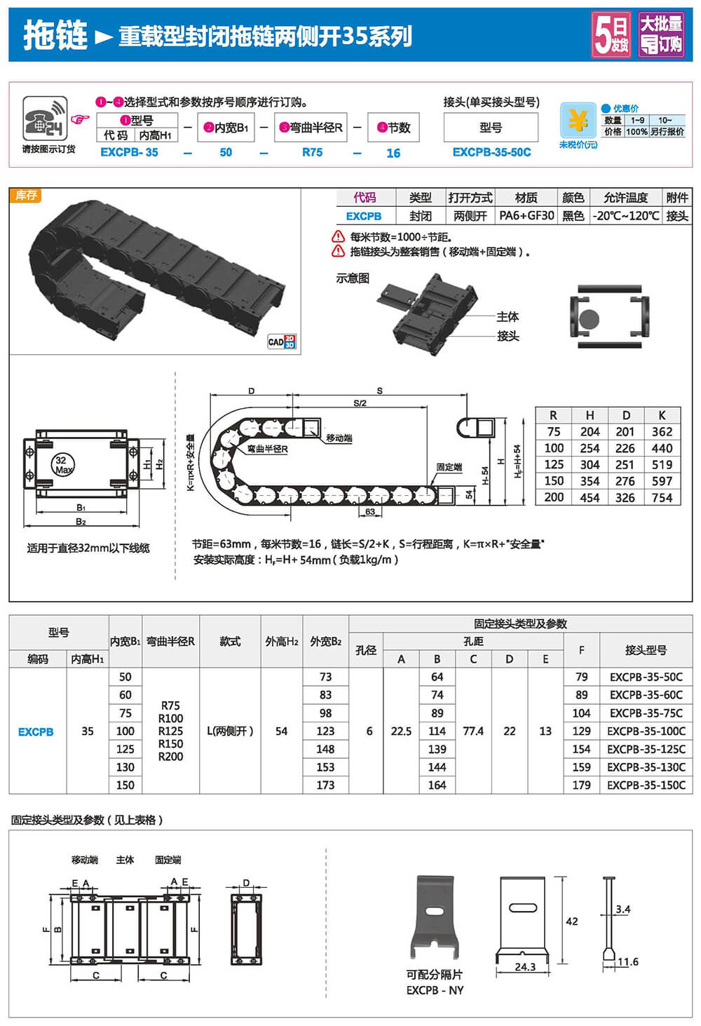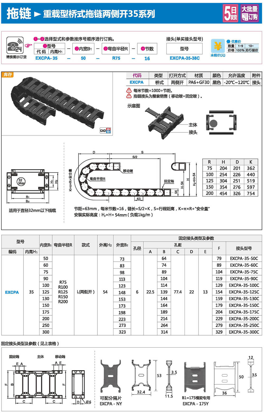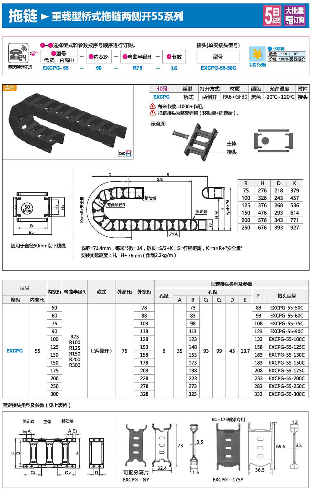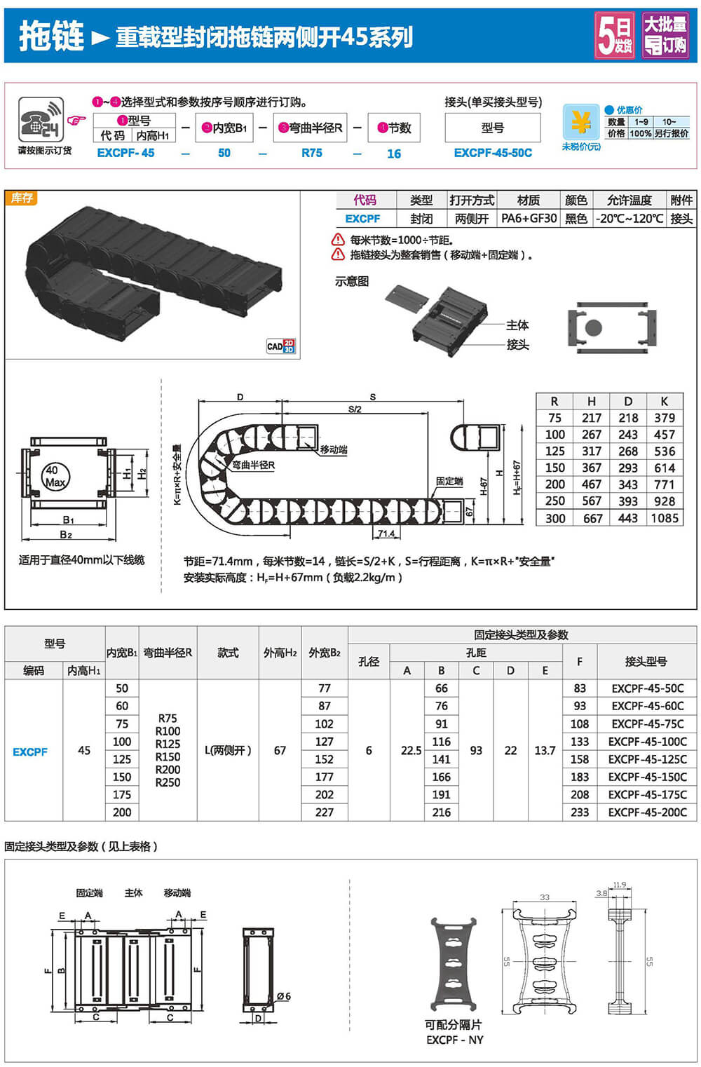 適合于使用在往復(fù)運動的場合,能夠?qū)?nèi)置的電纜、油管、氣管、水管等起到牽引和保護作用,拖鏈每節(jié)都能打開,便于安裝和維修。運動時噪音低、耐磨、可高速運動。拖鏈已被廣泛應(yīng)用于數(shù)控機床.電子設(shè)備、石材機械、玻璃機械、門窗機械、注塑機、機械手、起重運輸設(shè)備、自動化倉庫等。