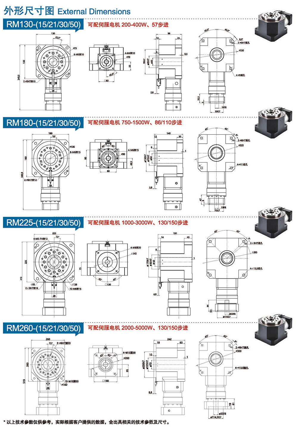 輸出軸形式新增了法蘭盤面輸出,底座安裝,可用于大負載旋轉平臺應用使用。