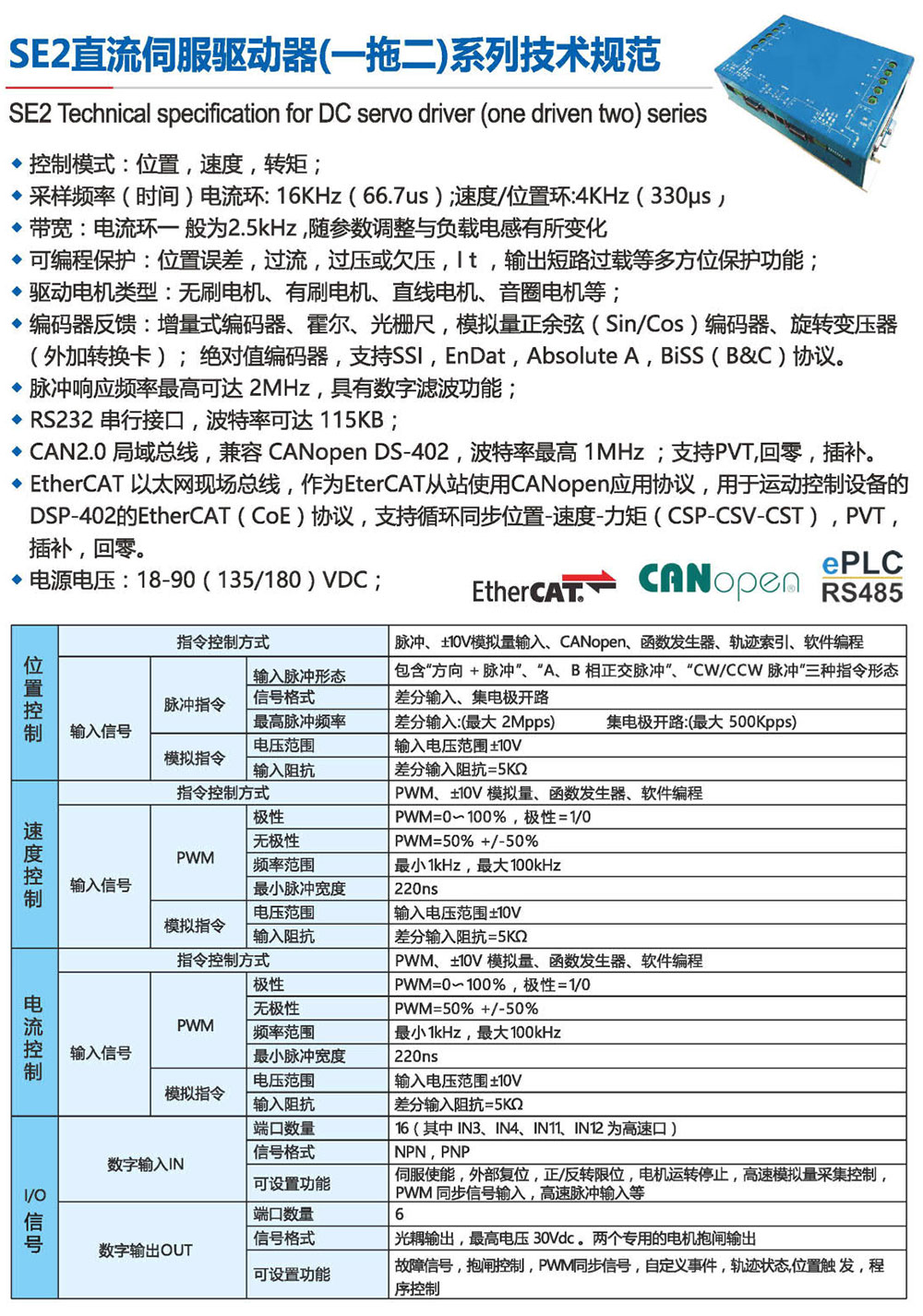 ◆可編程保護:位置誤差,過流,過壓或欠壓, 12t ,輸出短路過載等多方位保護功能;