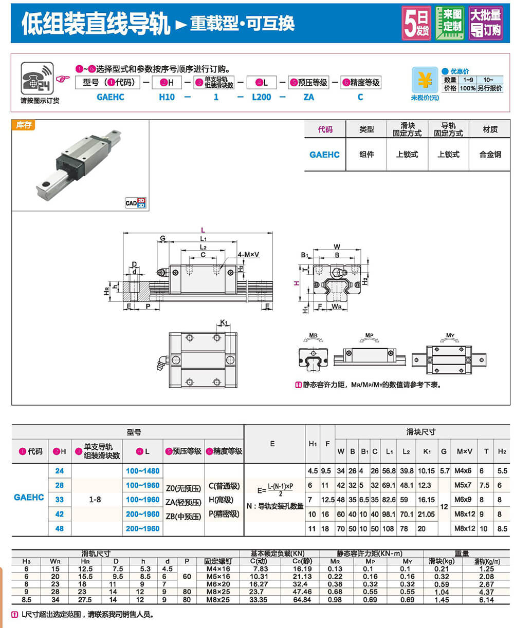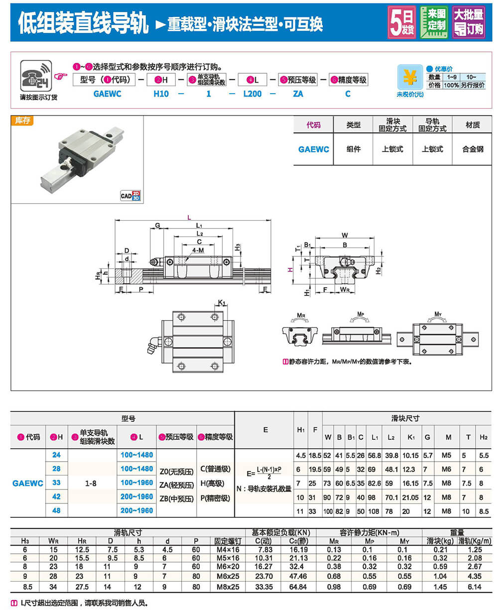 直線導軌由鋼珠在滑塊與滑軌之間作無限滾動循環(huán)負載平臺能沿著滑軌輕易地以高精度做線性運動。與傳統(tǒng)的滑動導引相比較滾動引導的摩擦系數(shù)可降低至1/50,由于啟動的摩擦力大大減少,相對的較少無效運動發(fā)生故而能輕易達到μum級進給及定位。在加上滑塊與滑軌的束制單元設(shè)計,使得線性導軌可同時承受上下左右等各個方向的負荷上述陳列特點并非傳統(tǒng)滑動導引所能比擬因此機臺若能配合滾珠螺桿,使用線性導軌作導引必能大幅提高設(shè)備精度與機械效能。