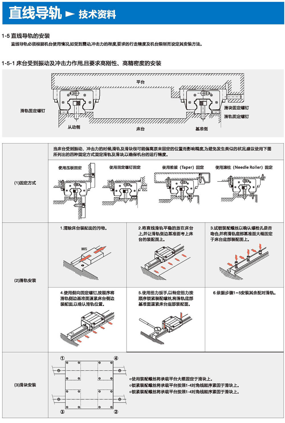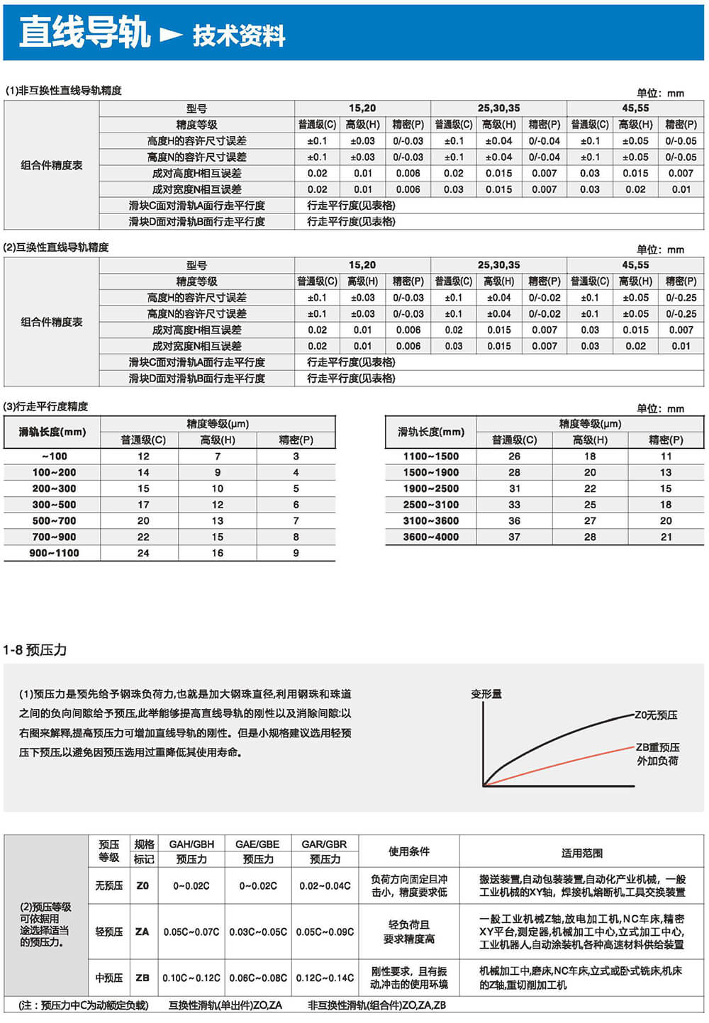 直線導(dǎo)軌由鋼珠在滑塊與滑軌之間作無限滾動循環(huán)負載平臺能沿著滑軌輕易地以高精度做線性運動。與傳統(tǒng)的滑動導(dǎo)引相比較滾動引導(dǎo)的摩擦系數(shù)可降低至1/50,由于啟動的摩擦力大大減少,相對的較少無效運動發(fā)生故而能輕易達到μum級進給及定位。在加上滑塊與滑軌的束制單元設(shè)計,使得線性導(dǎo)軌可同時承受上下左右等各個方向的負荷上述陳列特點并非傳統(tǒng)滑動導(dǎo)引所能比擬因此機臺若能配合滾珠螺桿,使用線性導(dǎo)軌作導(dǎo)引必能大幅提高設(shè)備精度與機械效能。